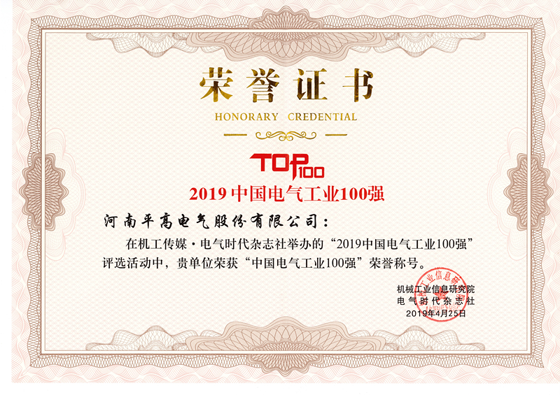 2019年4月25日,在由《電氣時代》雜誌社主辦,中國電器工業協會和(hé)中國電(diàn)力科學研究院協辦的“2019年中國(guó)電氣工業發展高峰論壇”上,sg99.xy丝瓜视频電氣獲2019年度“中國電氣工業(yè)領軍(jun1)企業”及2019年度“中國電氣(qì)工業100強(qiáng)”兩項榮譽稱號。